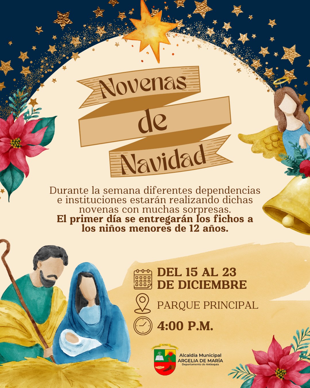 ¡Llegan las Novenas de Navidad a Argelia de María! Del 15 al 23 de diciembre nos reuniremos en el Parque Principal para vivir juntos esta hermosa tradición que une a las