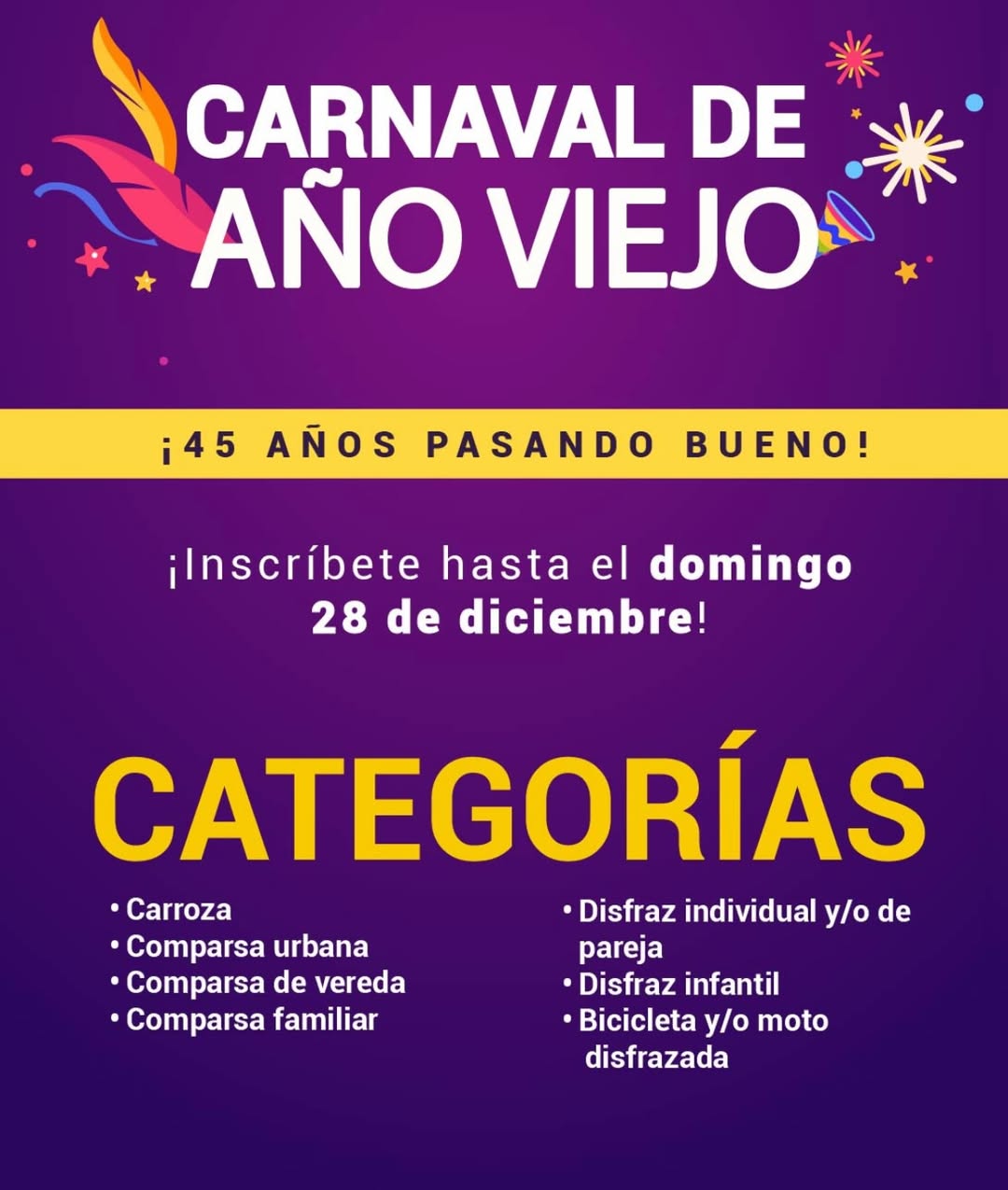 Súmate a esta gran tradición y vive la fiesta más alegre de fin de año. ¡Inscríbete y sé parte del Carnaval!