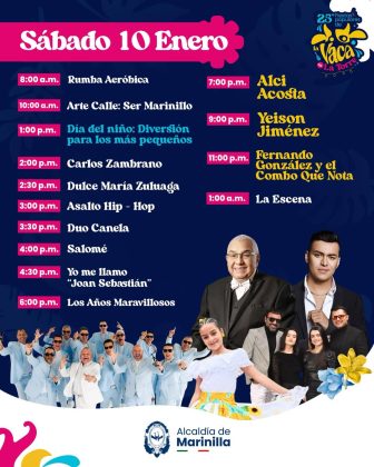 La música también será protagonista durante estas festividades, con presentaciones de artistas y agrupaciones como Los Golden Boys, Las Alondras, Olimpo Cardona, Los Populares del Despecho, Esteban y Wilson y DJ Achik, entre otros invitados, que animarán las jornadas y pondrán a vibrar a propios y visitantes.