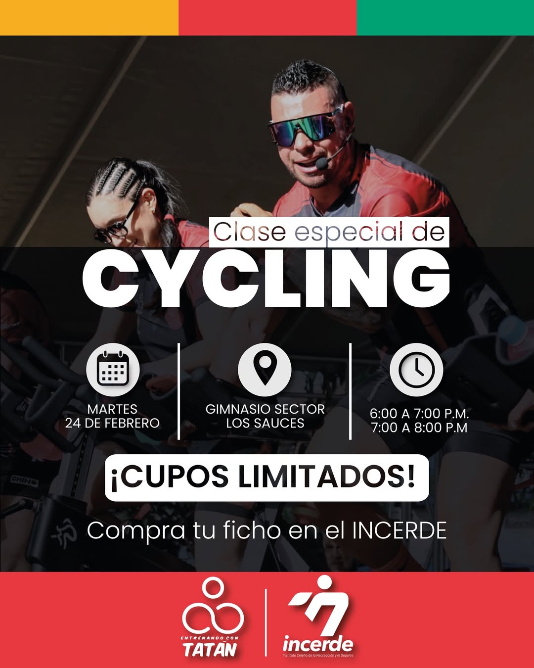 Compra tu ficho en la sede administrativa del INCERDE y participa de la clase de Cycling.