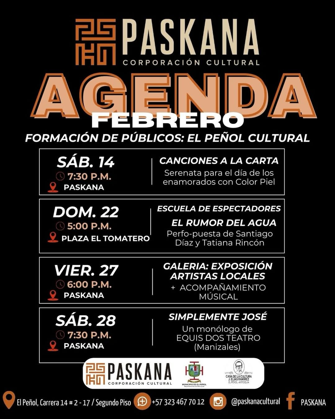 02FEB(FEB 2)09:0028(FEB 28)20:00Agenda febreroRionegro
