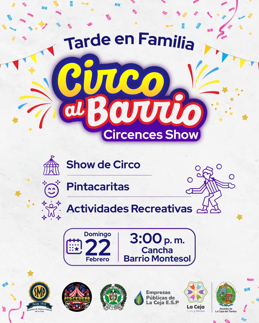 ¡El circo llega a nuestro barrio! Te invitamos a vivir una tarde llena de magia, sonrisas y diversión en familia con Circo al Barrio. 📅 Domingo 22 de febrero 🕒 3:00 p. m. 📍