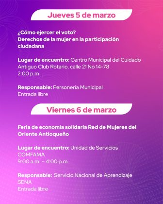 En marzo, Marinilla conmemora el Mes de los Derechos de las Mujeres con una agenda especial hasta el 27 de marzo para reconocer su liderazgo y fuerza transformadora. Desliza y conoce