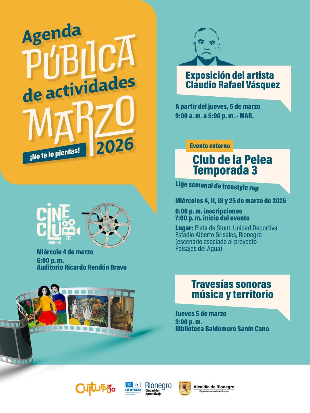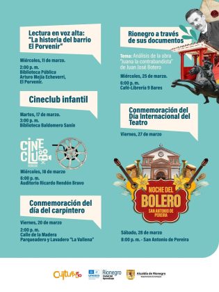 En Rionegro, Ciudad del Bienestar y del Aprendizaje, la cultura se vive en cada barrio, en cada escenario y en cada encuentro que nos reúne como comunidad. Este mes de marzo
