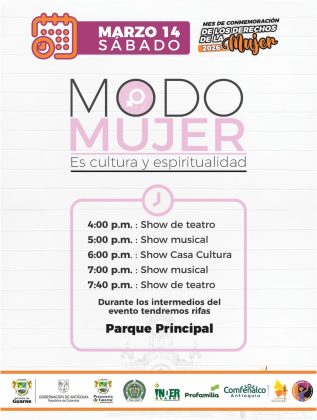 01MAR08:0030(MAR 30)18:00Mes de Conmemoración de los Derechos de la Mujer 2026Guarne