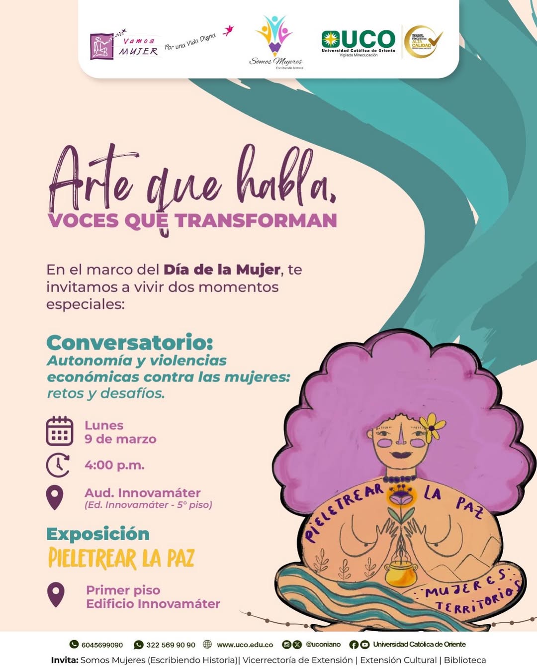 En el marco del Día de la Mujer, abrimos espacios para el diálogo, expresión artística y construcción de paz Te esperamos para vivir estos dos momentos especiales, donde las voces de