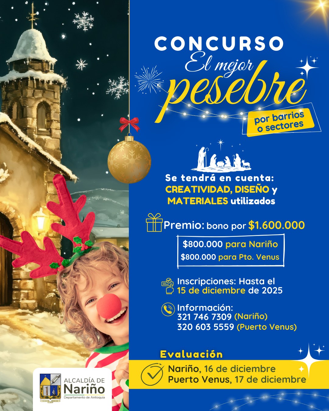 La Alcaldía invita a toda la comunidad a participar en el Concurso el Mejor Pesebre por barrios o sectores, una tradición que fortalece nuestras raíces, llena de luz nuestros hogares y une a las familias alrededor del espíritu navideño.