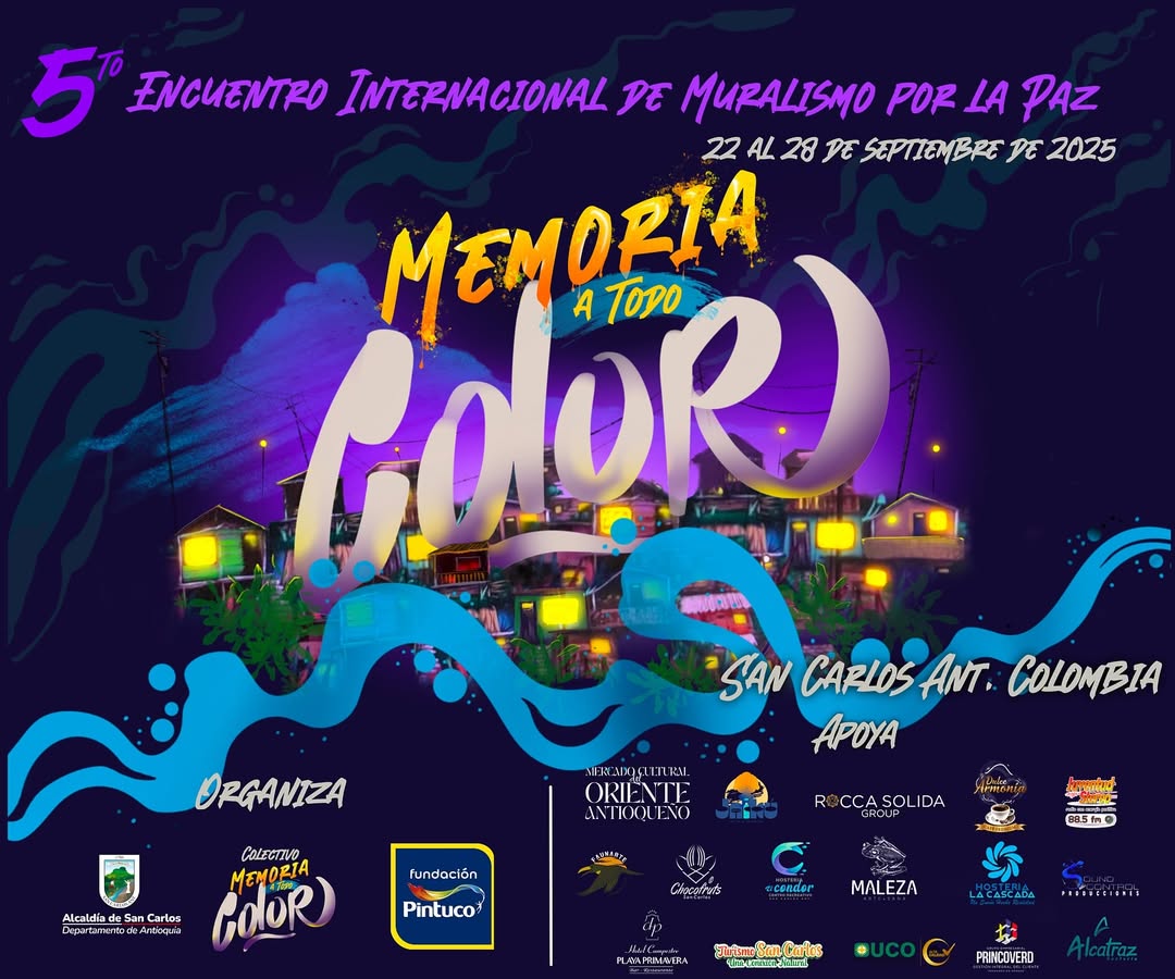 Este evento se realizará en el Marco de la Semana por La Paz y es posible gracias a quienes lo organizan como el colectivo Memoria a todo color, la Alcaldía de San Carlos, la Fundación Pintuco y todas las personas, colectivos y empresas que creen en el poder del arte como puente para sanar y unir.