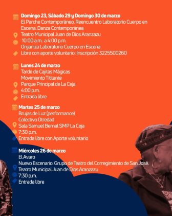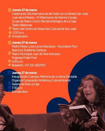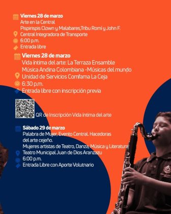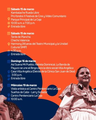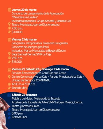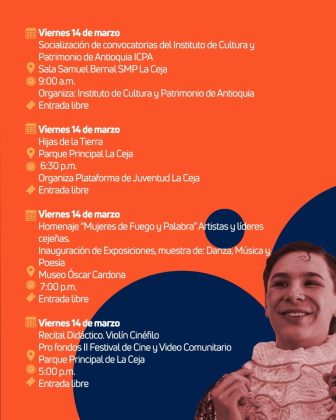 Del 14 al 30 de marzo, La Ceja se llena de arte con conciertos, danza, teatro, exposiciones de arte, celebraciones y mucho más. Un festival al que se unen instituciones, artistas y colectivos que hacen vibrar nuestro municipio.