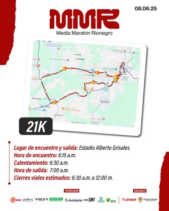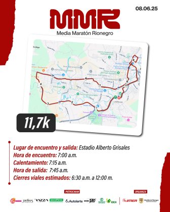 La Alcaldía de Rionegro, a través del Instituto Municipal de Educación Física, Deporte y Recreación – IMER, invita a la comunidad a vivir y disfrutar la XXI Media Maratón Ciudad Santiago de Arma de Rionegro, que se realizará este domingo 8 de junio con la participación de aproximadamente 5.000 atletas en tres recorridos: 6K, 11.7K y 21K.