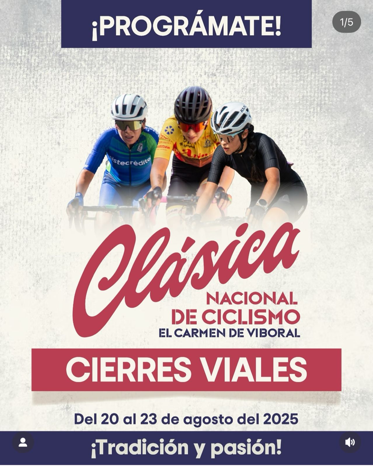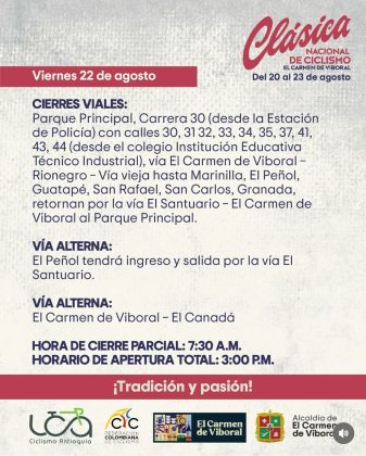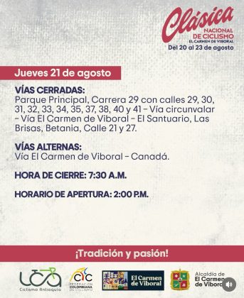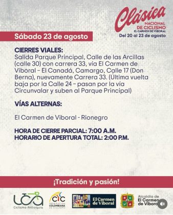 20AGO(AGO 20)07:0023(AGO 23)15:00Clásica Nacional de CiclismoEl Carmen de Viboral