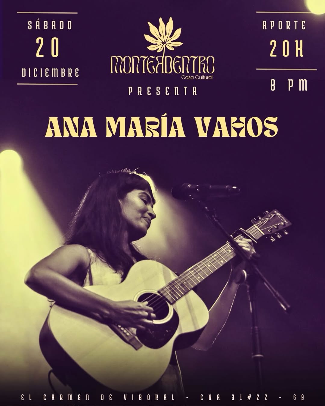 El próximo sábado tendremos el placer de escuchar y sentir en nuestra casa a la cantautora Ana María Vahos, Un espacio íntimo para compartir y habitar cada una de sus canciones.