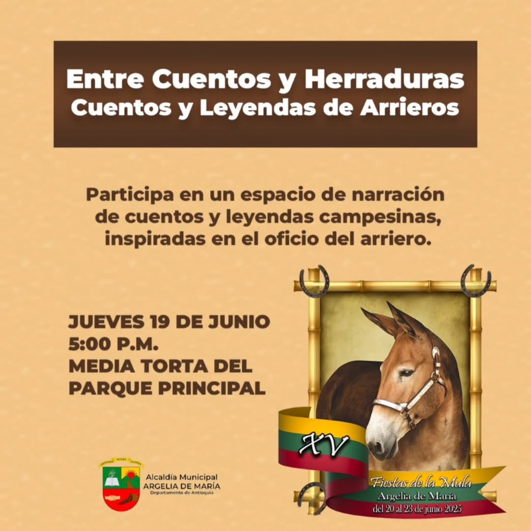 En el marco de la celebración de las Fiestas de la Mula, te invitamos a vivir una tarde llena de tradición, relatos y cultura con “Entre Cuentos y Herraduras: Cuentos y Leyendas de Arrieros”.