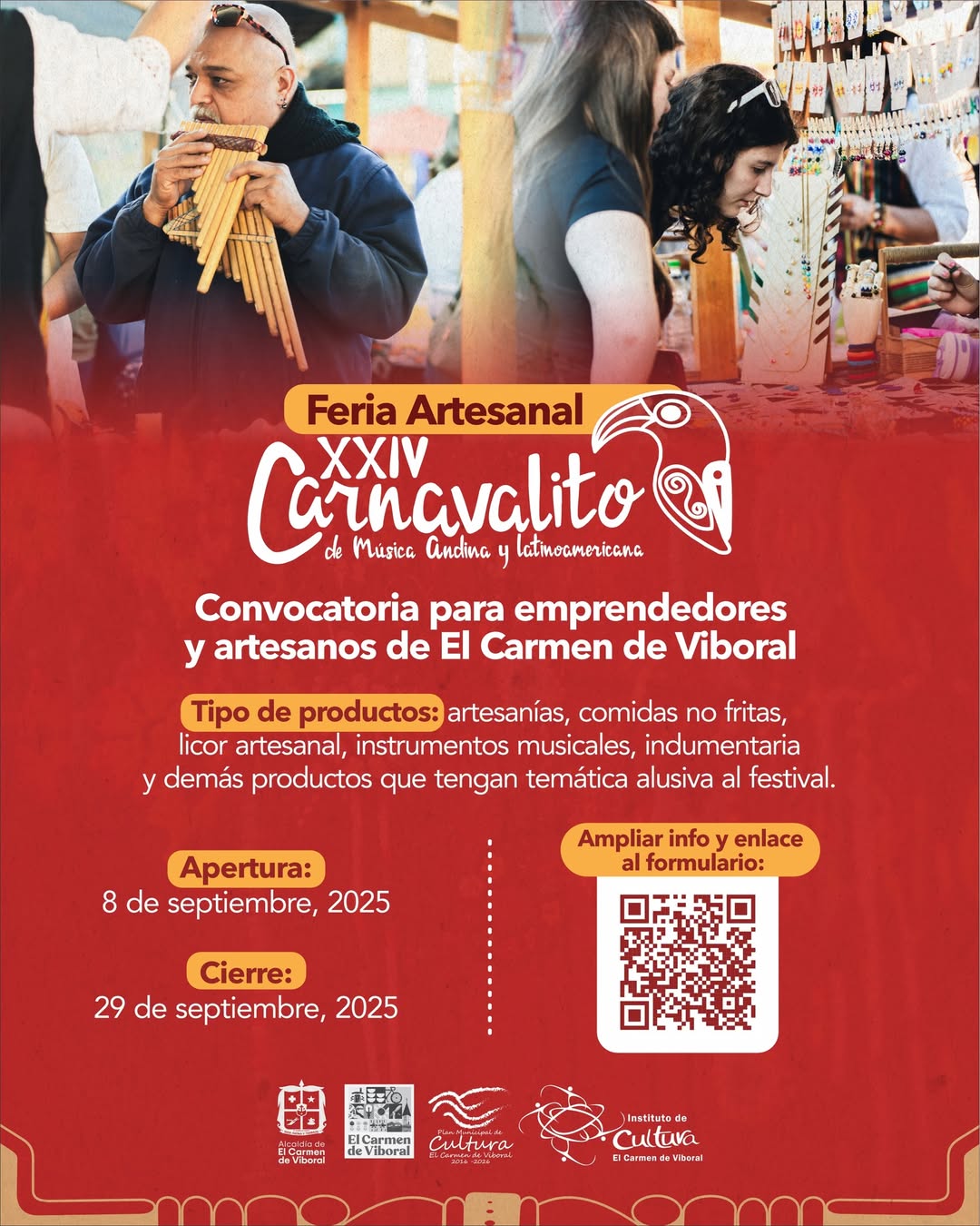 Durante la XXIV versión del Carnavalito de Música Andina y Latinoamericana se llevará a cabo la Feria Artesanal, con el propósito de apoyar y fortalecer los emprendimientos, emprendedores y artesanos de El Carmen de Viboral, cuyos productos artesanales sean afines a las dinámicas del festival (indumentaria y vestuarios con referencia a las músicas andinas y latinoamericanas, souvenirs y artesanías, bebidas artesanales, comidas rápidas, entre otras)
