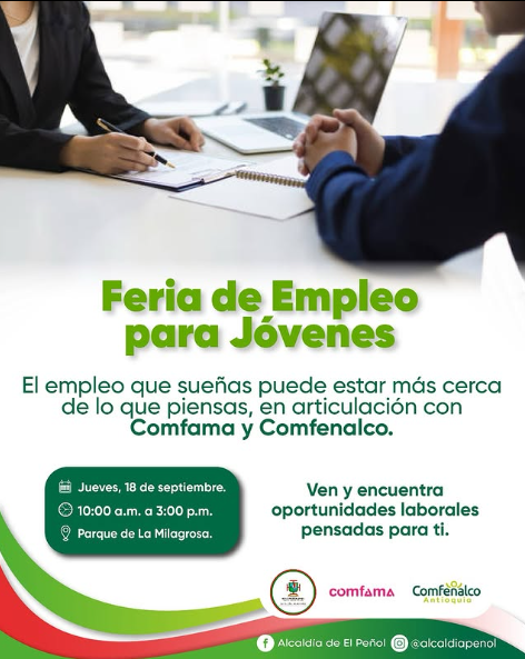 No te pierdas la feria de empleo para jóvenes, en articulación con @comfama y @comfenalcoant .