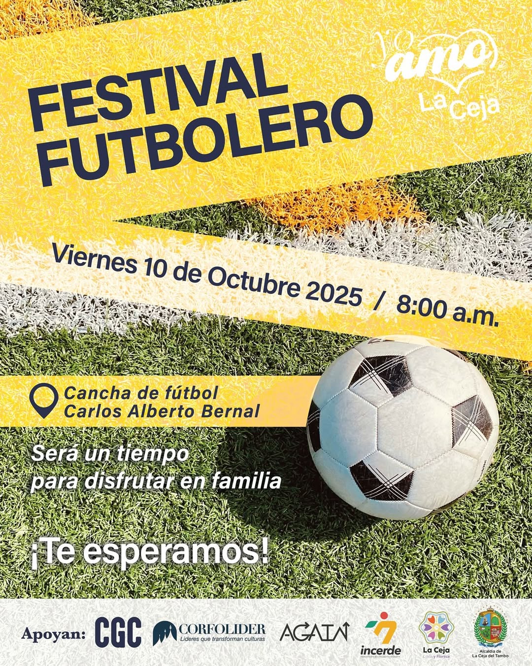 Este viernes 10 de octubre te esperamos desde las 8:00 a.m. en la Cancha de Fútbol Carlos Alberto Bernal para disfrutar juntos del Festival Futbolero.