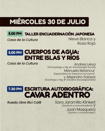 Esta es nuestra programación general, pensada para evocar el fluir de las aguas que han moldeado nuestros territorios, nuestra historia y, claro, nuestra literatura. En ese espíritu hemos creado una programación para todas las edades, para que no haya excusas para perdérsela.
