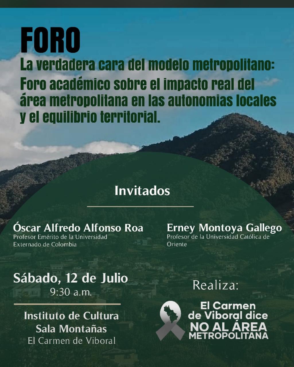 12JUL09:3011:00Foro: La verdadera cara del modelo metropolitanoEl Carmen de Viboral