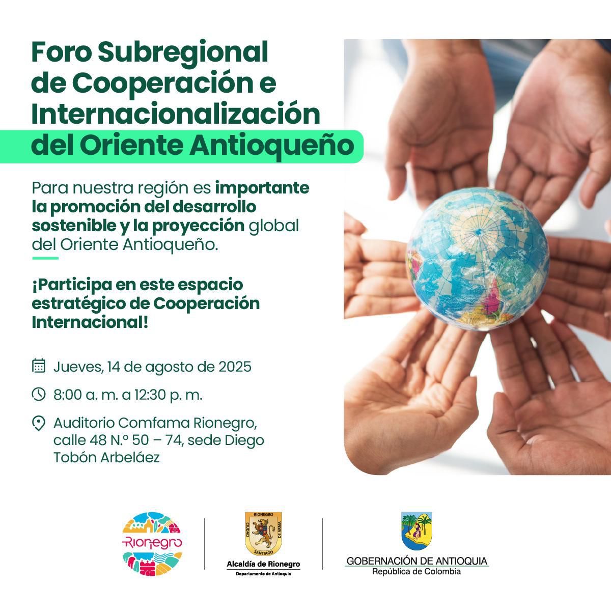 14AGO08:0012:00Foro subregional de Cooperación e Internacionalización del Oriente AntioqueñoRionegro