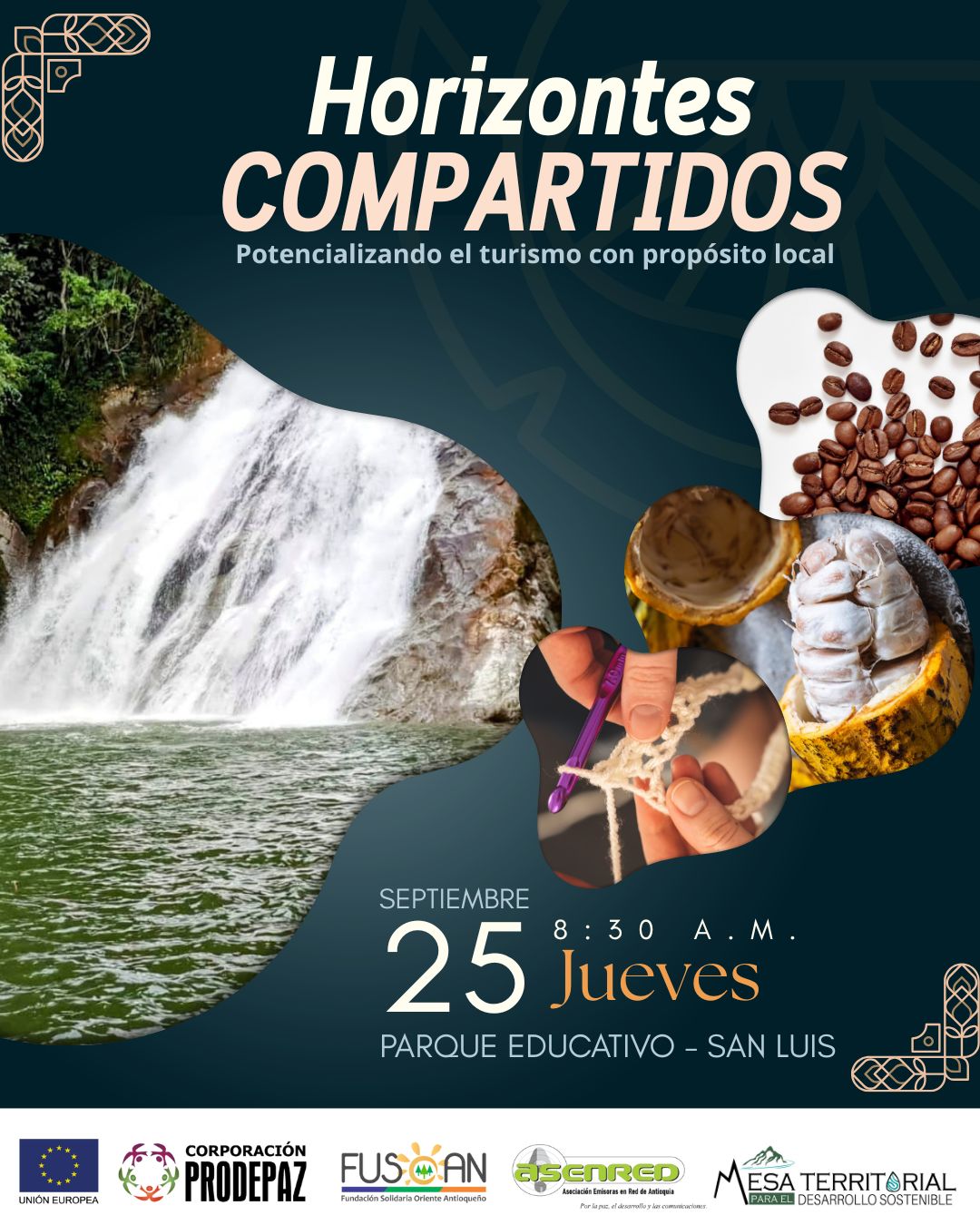 El encuentro “Horizontes compartidos: potencializando el turismo con propósito local” que se realizará en el municipio de San Luis el jueves 25 de septiembre del año en curso de 9:00 a.m. a 3:00 p.m., tiene como objetivo propiciar un espacio para el afianzamiento de saberes sobre normatividad e instrumentos de planificación local de turismo, así como el reconocimiento de las experiencias de turismo en los municipios de Cocorná, San Luis, San Francisco, Puerto Nare, Puerto Triunfo y la zona del Magdalena Medio Sonsoneño, como plataforma para el desarrollo local y comunitario.
