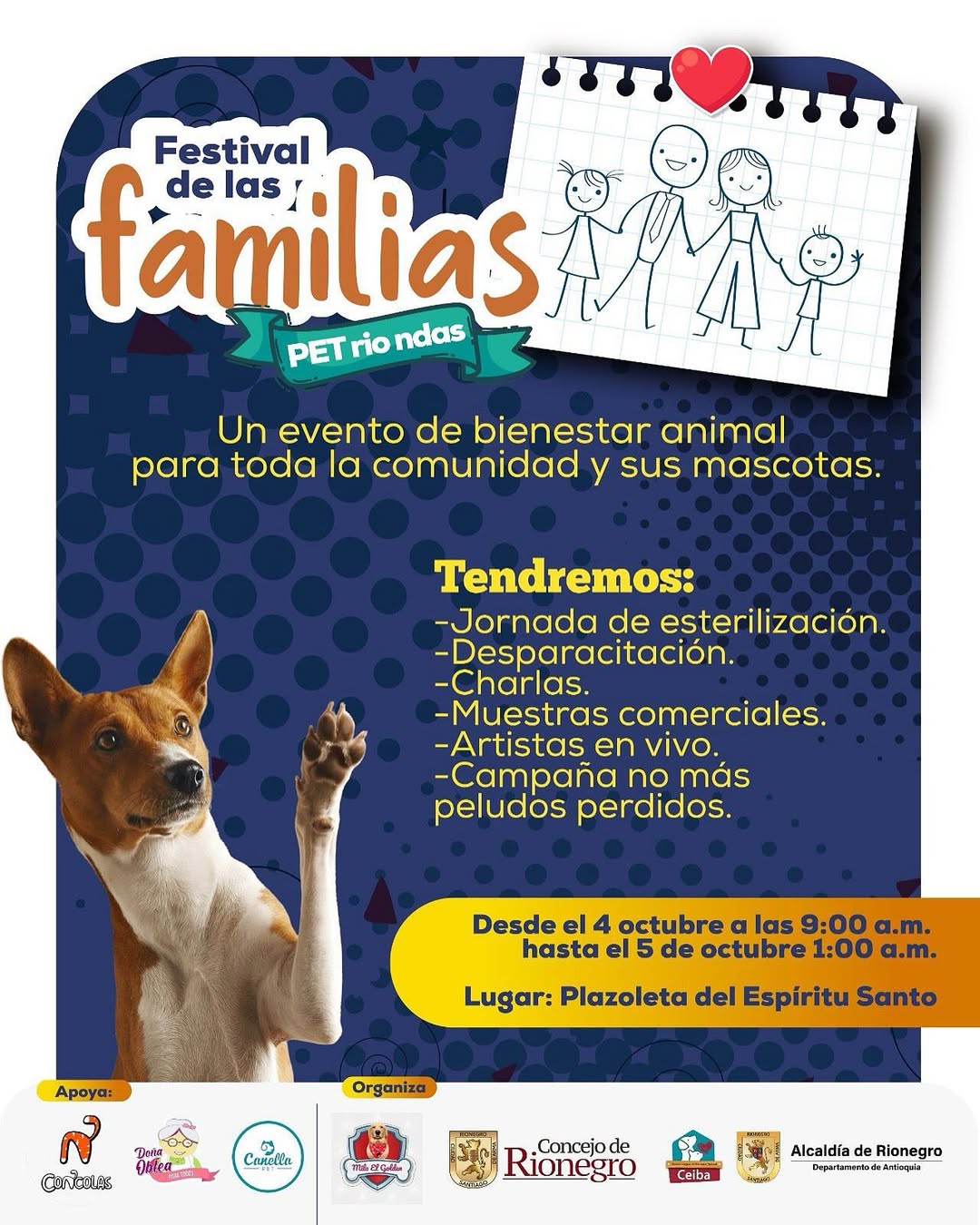 ¡Se llego el día! Este sábado 4 de octubre tendremos nuestra jornada de Bienestar Animal en la plazoleta del Espíritu Santo.