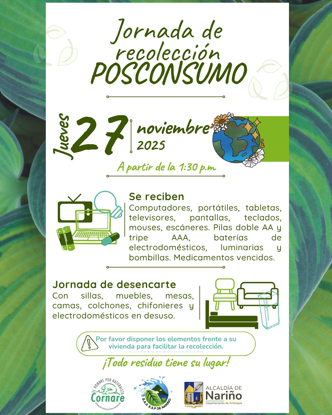 S煤mate a esta jornada de recolecci贸n posconsumo y el desencarte.隆Todo residuo tiene su lugar! Jueves 27 de noviembre a聽partir de la 1 p.m.
