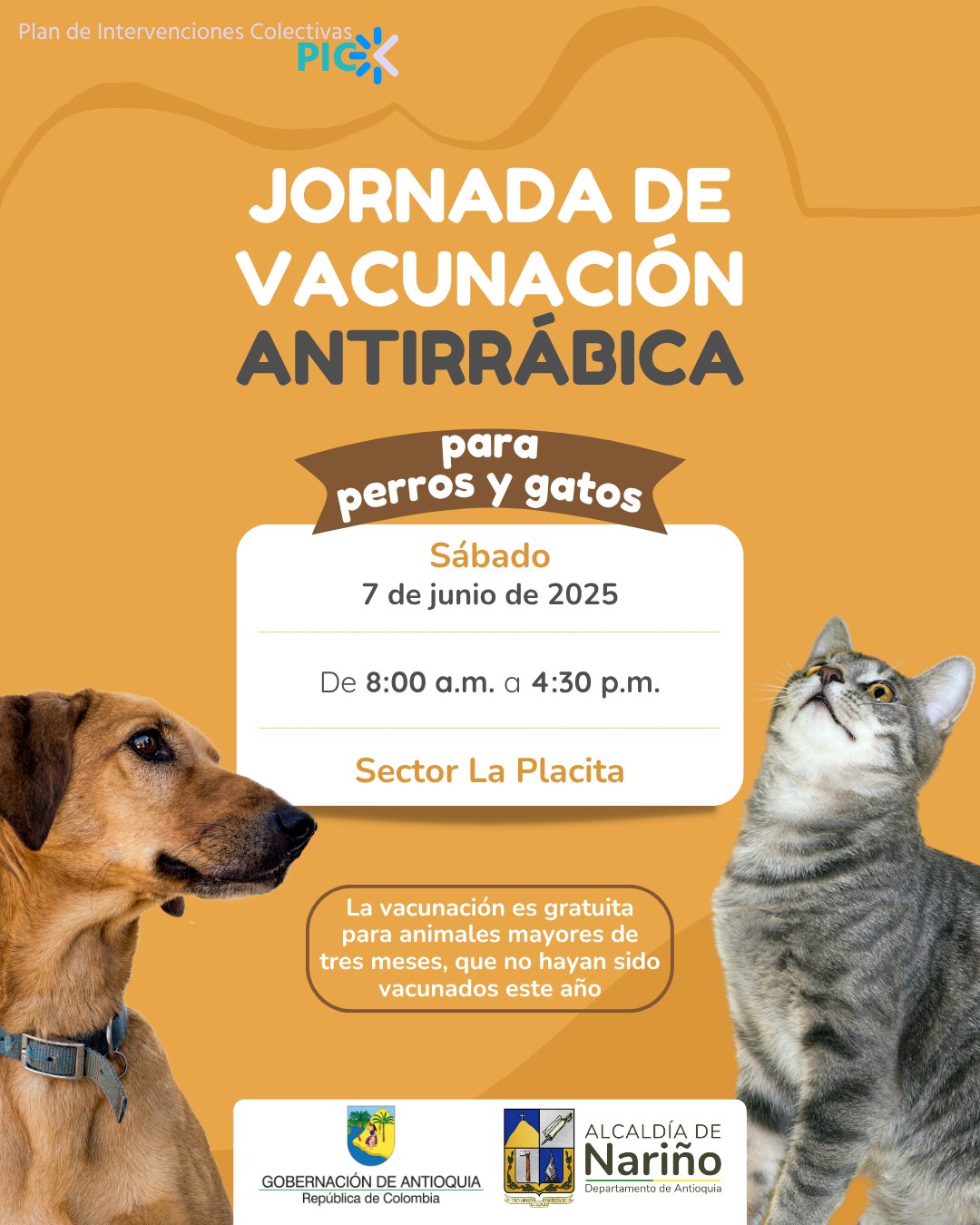 Jornada de vacunaci贸n antirr谩bica para perros y gatos. 馃棑S谩bado 7 de junio 鈴癉e 8:00 a.m. a 4:30 p.m. 馃搷Sector La Placita