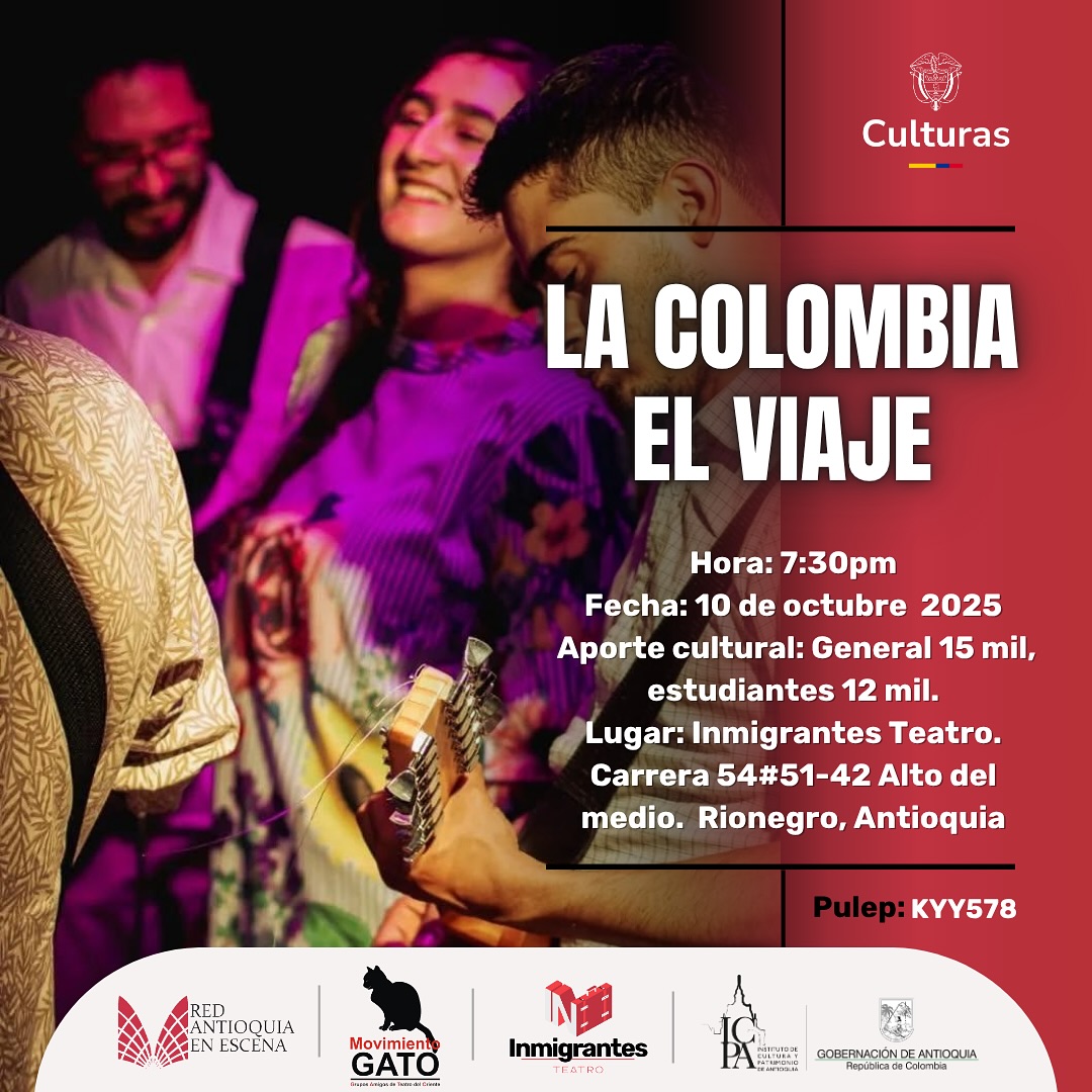 La Colombia El viaje un recorrido por las músicas latinoamericanas con un potente mensaje y y reflexiones sobre la cotidianidad y algunos temas trascendentales. Acompañados por una Bandola, guitarra, bajo,