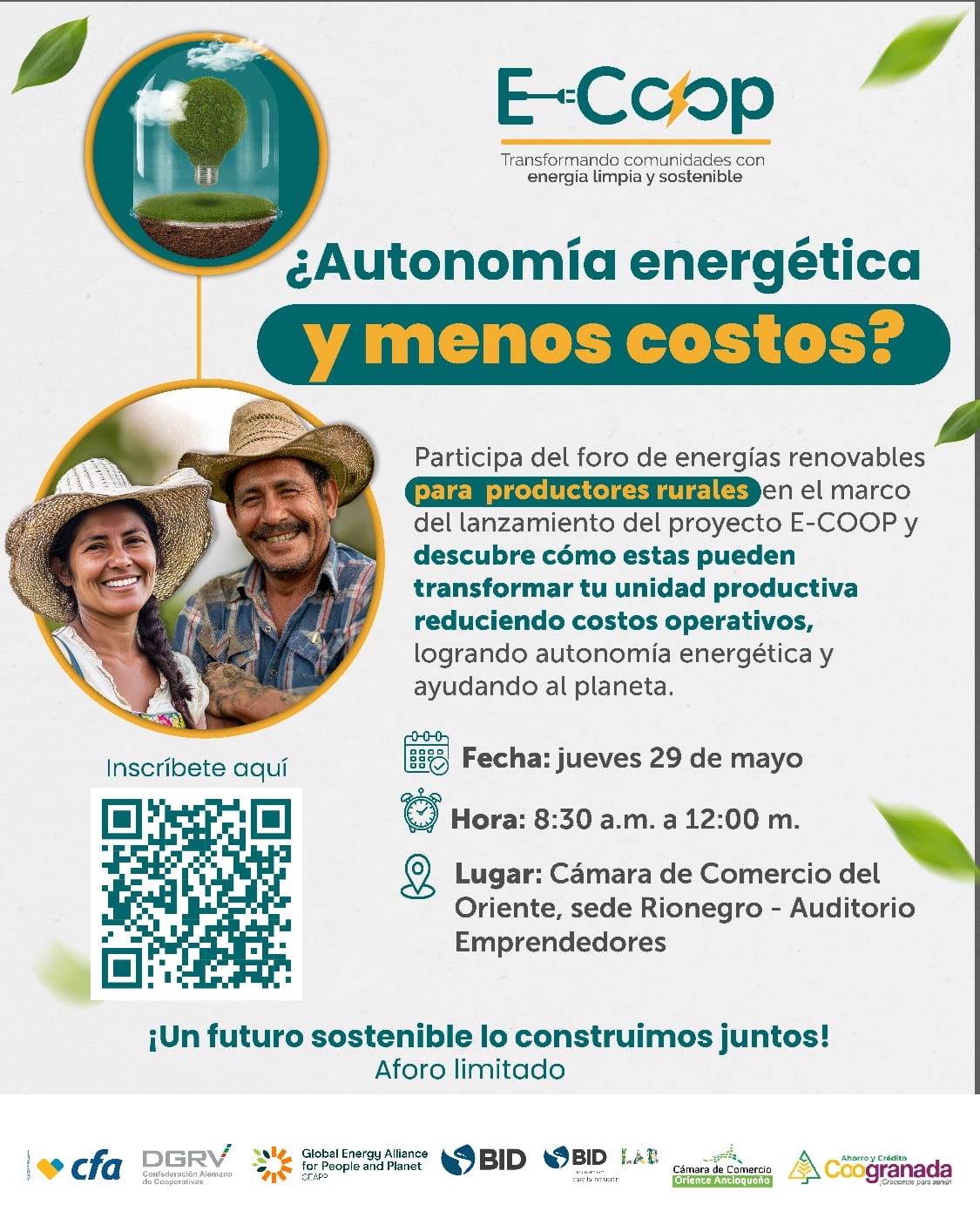 Invitación para el *lanzamiento del proyecto LAC E-COOP* que será de mucho interés *para las organizaciones y productores que tengan actividades con consumo de energía*. Los esperamos! E-COOP* que será de mucho interés *para las organizaciones y productores que tengan actividades con consumo de energía*. Los esperamos!