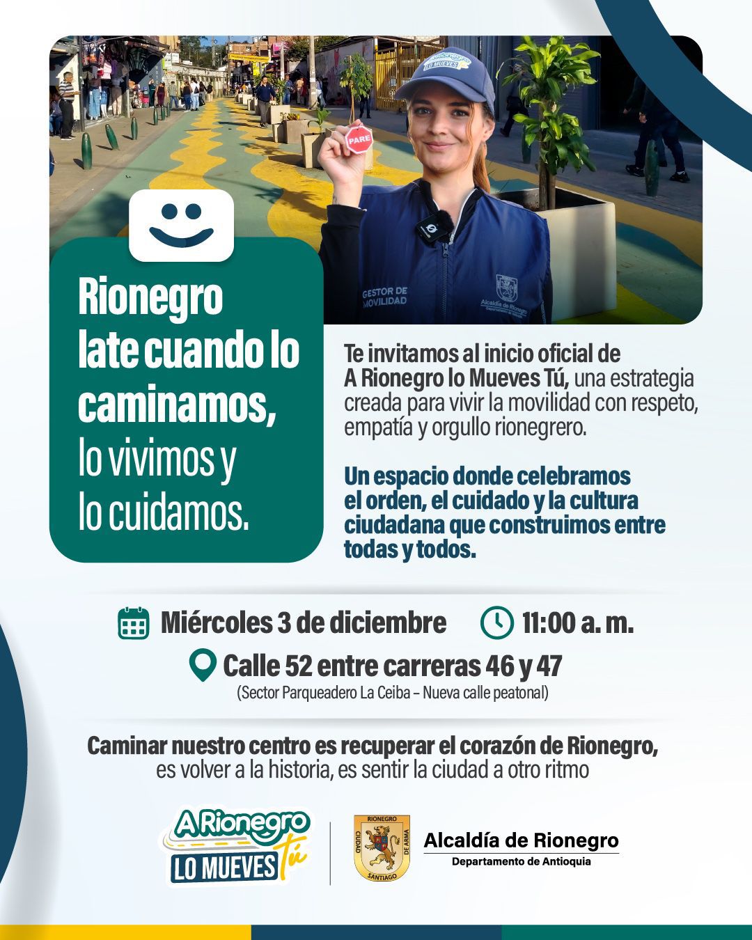 Compartimos invitación al lanzamiento de A Rionegro lo Mueves Tú, una estrategia para fortalecer la movilidad y la cultura ciudadana para el bienestar.