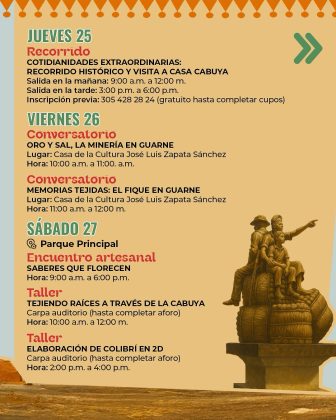 Uno de los grandes imperdibles serán los recorridos históricos a Casa Cabuya, un espacio para reconocer las cotidianidades extraordinarias que han tejido nuestra historia.