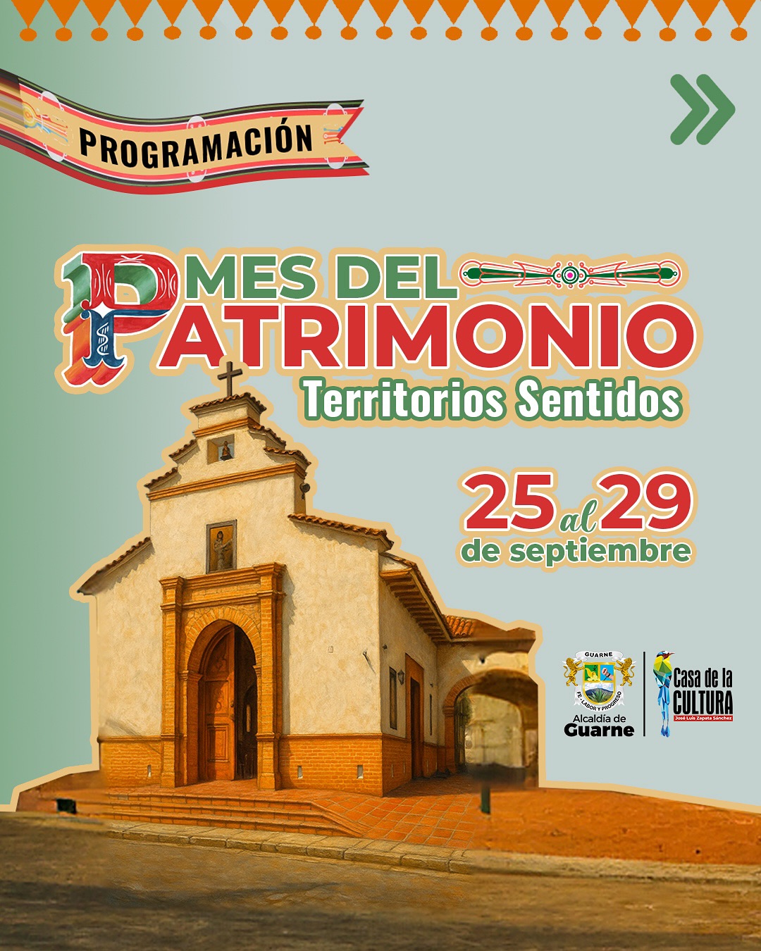 Del 25 al 29 de septiembre Guarne celebra el Mes del Patrimonio 2025 “Territorios sentidos” Este septiembre nos unimos en torno a la memoria colectiva, nuestras tradiciones y la diversidad cultural