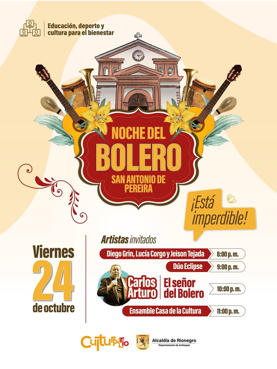 Este viernes 24 de octubre, San Antonio de Pereira se viste de romanticismo para vivir un gran homenaje a Carlos Arturo, El Señor del Bolero —una voz que ha marcado generaciones y que nos invita a viajar por los recuerdos a través de su inigualable repertorio.