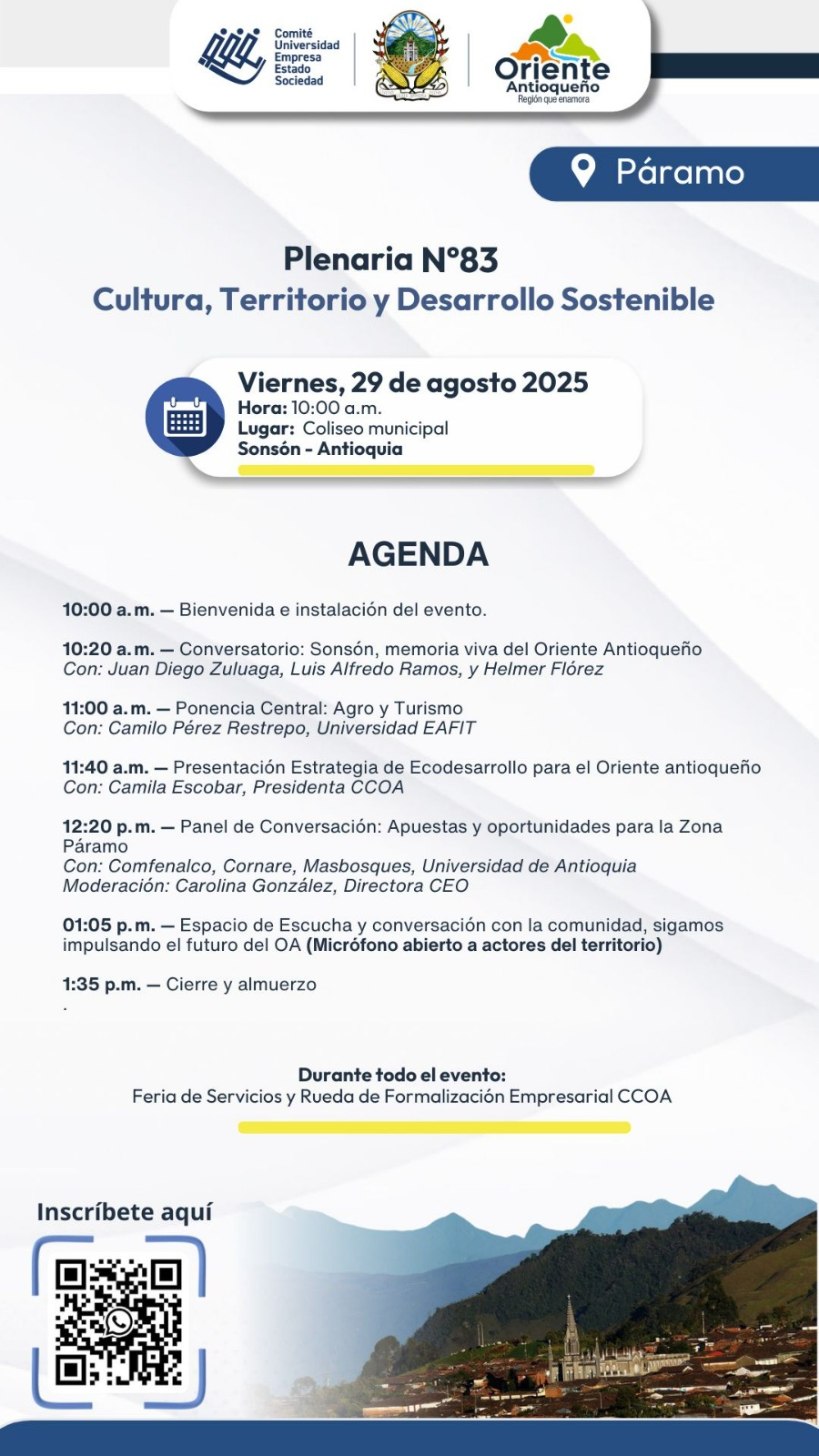 Un encuentro donde la memoria, el territorio y la sostenibilidad se ponen en diálogo para definir el rumbo de la zona Páramo que soñamos y necesitamos. Este espacio reunirá a la