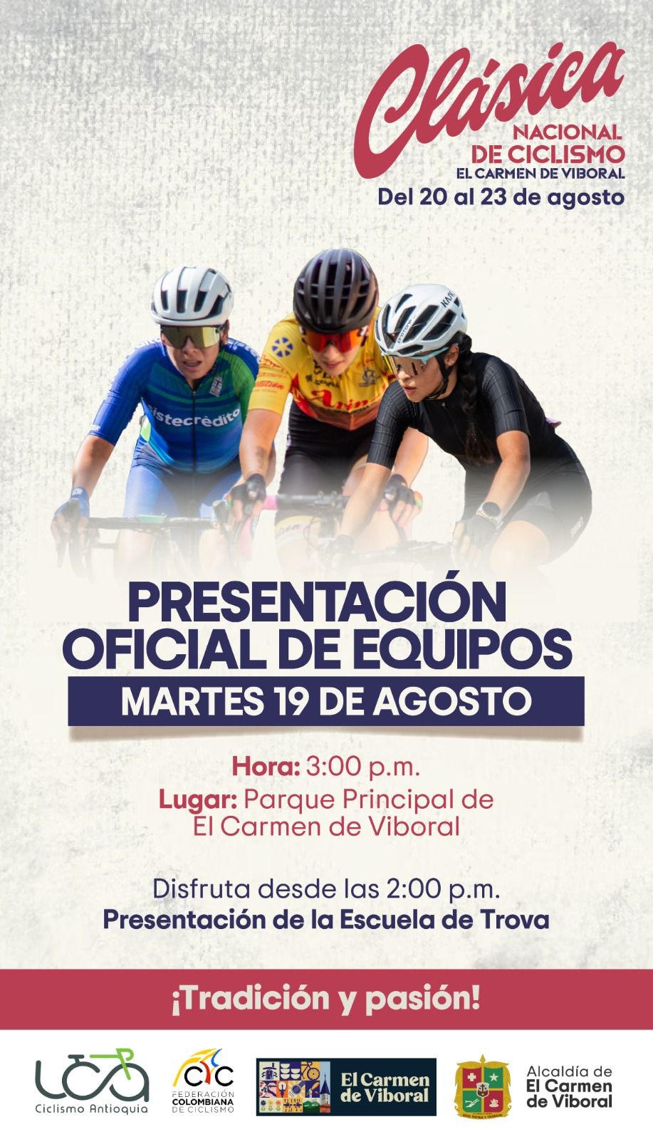 19AGO14:0017:00Presentación oficial Clásica Nacional de CiclismoEl Carmen de Viboral