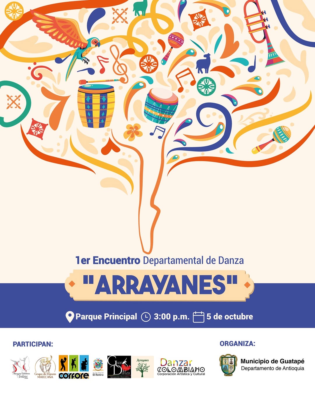 ¡La danza llega a Guatapé! este 5 de octubre viviremos el Primer Encuentro Departamental de Danza, una celebración que llenará nuestro municipio de ritmo, cultura y tradición.