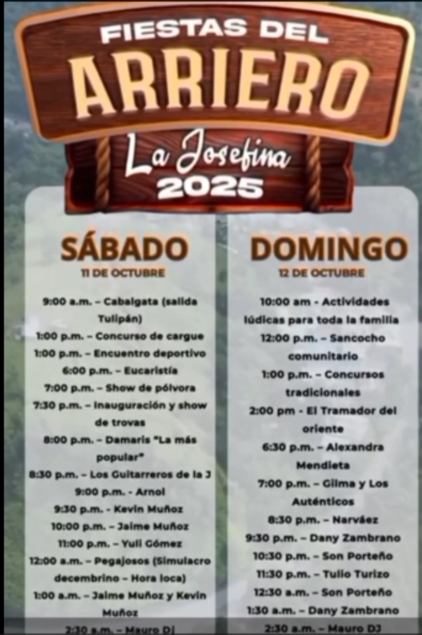 Primeras fiestas del arriero corregimiento la Josefina no te pierdas este grandioso evento y que cada año disfrutemos de las fiestas populares de la artillería