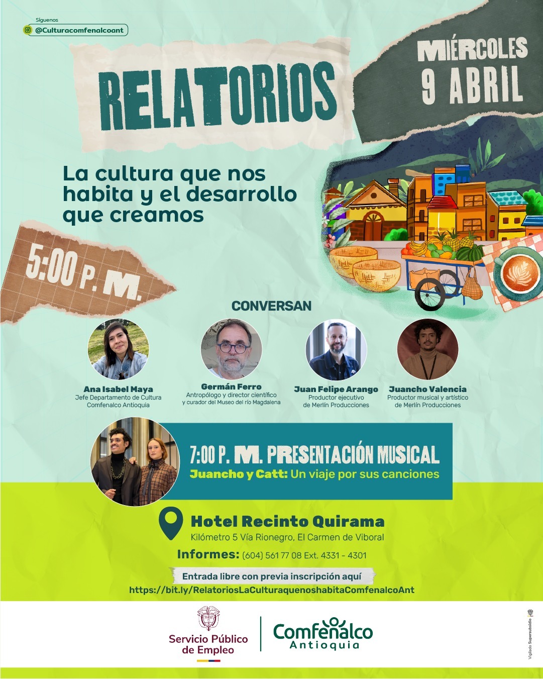Esta vez, conversaremos de La cultura que nos habita y el desarrollo que creamos ✨📢 📅 Fecha: 9 de abril 🕕 Hora: 5:00 p.m. 📍 Lugar: Hotel Recinto Quirama Ven a este espacio de