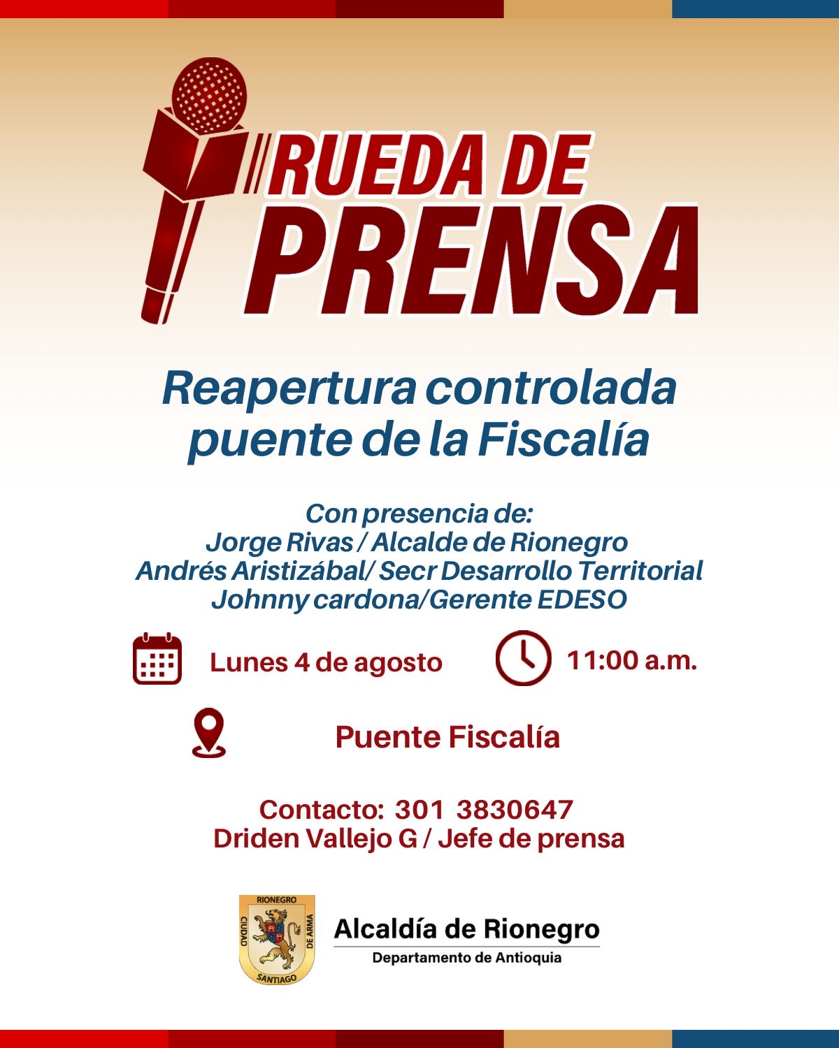 Compartimos la siguiente invitación para que nos acompañen a la reapertura del puente de La Fiscalía.