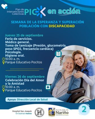 22SEP(SEP 22)10:0026(SEP 26)13:00Semana de la Esperanza y Superaci贸n Poblaci贸n con DiscapacidadNari帽o