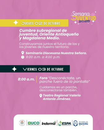 Del 28 de septiembre al 5 de octubre Marinilla vibra con la Semana de la Juventud 2025.