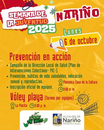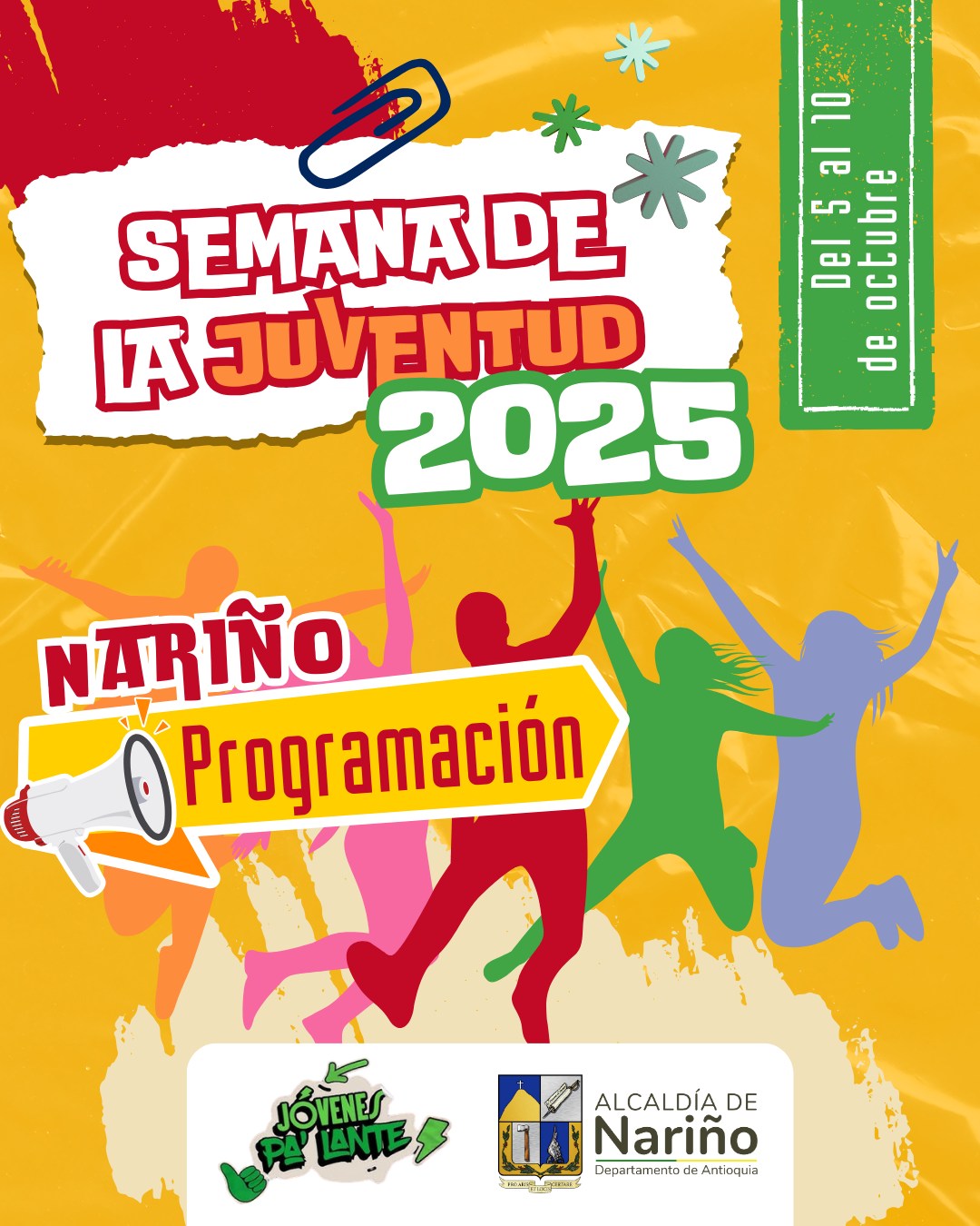 Ey, jóvenes de Nariño, esta es la programación de la Semana de la Juventud, del 5 al 10 de octubre de 2025. Bien parchados pues