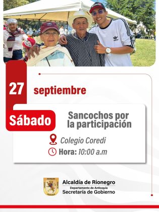 Del 22 al 27 de septiembre, la Alcaldía de Rionegro invita a toda la comunidad a ser parte activa de la Semana de la Participación Ciudadana, una iniciativa que busca