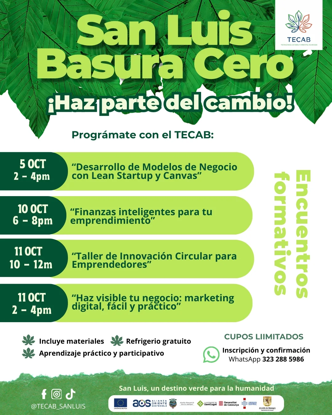 ¡San Luis Basura Cero te invita a fortalecer tu emprendimiento! En el TECAB abrimos un ciclo de talleres prácticos y participativos para las unidades productivas y emprendedores de nuestro municipio. 📅 Cronograma