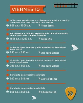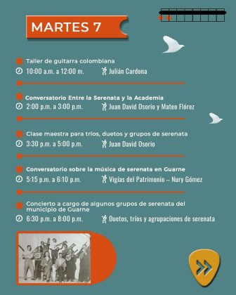 Este encuentro cultural contará con talleres, clases maestras, conversatorios y conciertos, enfocados en los saberes musicales de los instrumentos de cuerda pulsada. Estudiantes, músicos y la comunidad en general podrán sumergirse en una experiencia enriquecedora, celebrando nuestras raíces a través de un homenaje a los Serenateros del Pueblo.