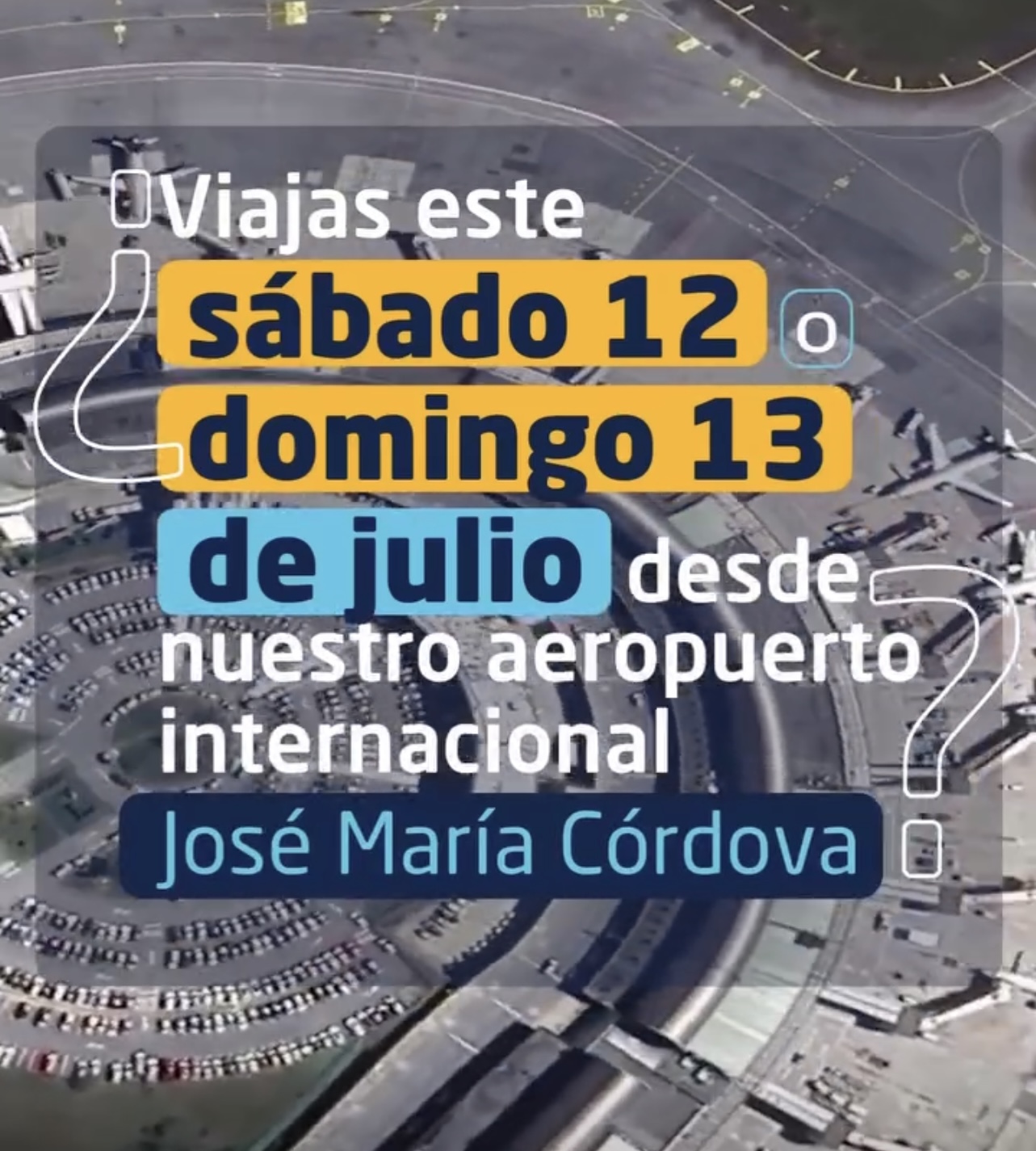 12JUL(JUL 12)08:0013(JUL 13)20:00Viajas este fin de semana desde el Aeropuerto JMC?Rionegro