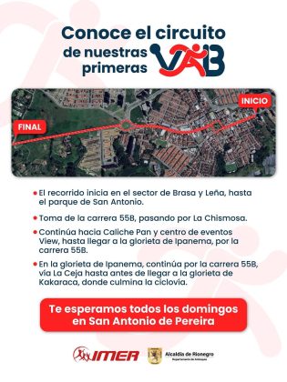 Este domingo 21 de septiembre inician las Vías Activas del Bienestar – VAB en San Antonio de Pereira entre las 7:00 a.m. a 10:00 a.m.