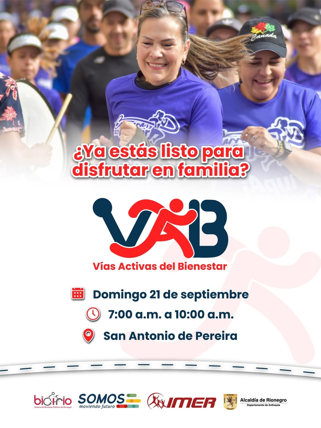 ¿Ya estás listo para disfrutar en familia de las vías activas saludables?🏃♀️ Este domingo 21 de septiembre inician las Vías Activas del Bienestar - VAB en San Antonio de Pereira entre