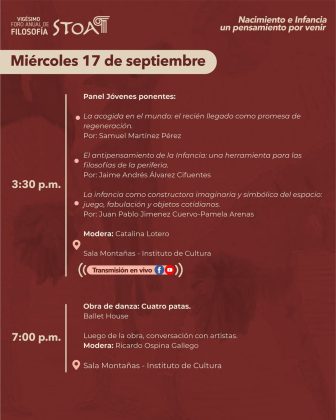 Ya está disponible la programación del Vigésimo Foro Anual de Filosofía STOA. Nacimiento e infancia: un pensamiento por venir.