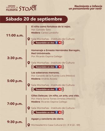17SEP(SEP 17)09:0020(SEP 20)23:00Vigésimo Foro Anual de Filosofía STOAEl Carmen de Viboral
